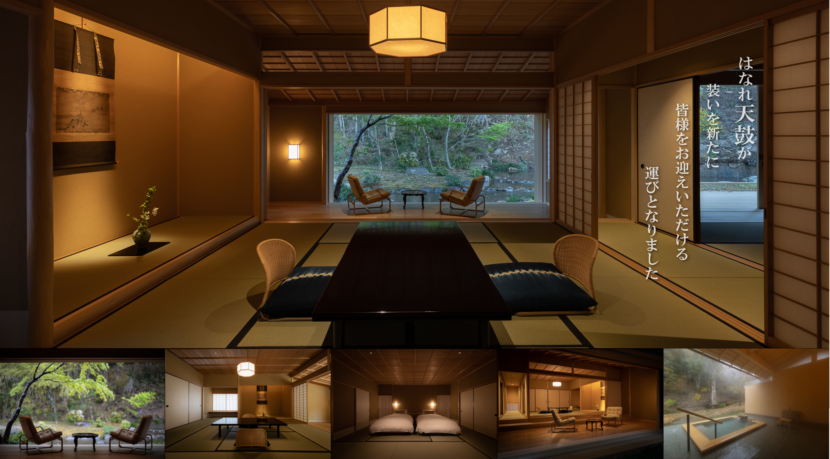 華やいだ空気を纏う和の空間。心を満たす特別な体験。悠久の時と共に歩んできたここ修善寺で安らぎのひとときを。